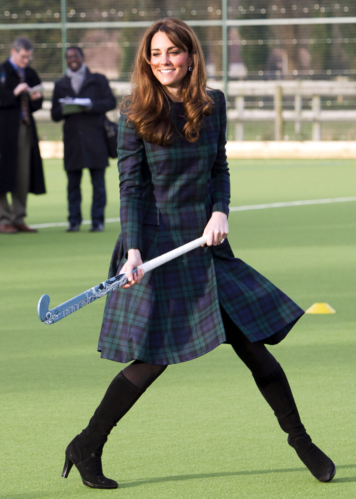 圖:11月30日,凱特回到母校聖安德魯斯學校,與學生一起打曲棍球\法新社
