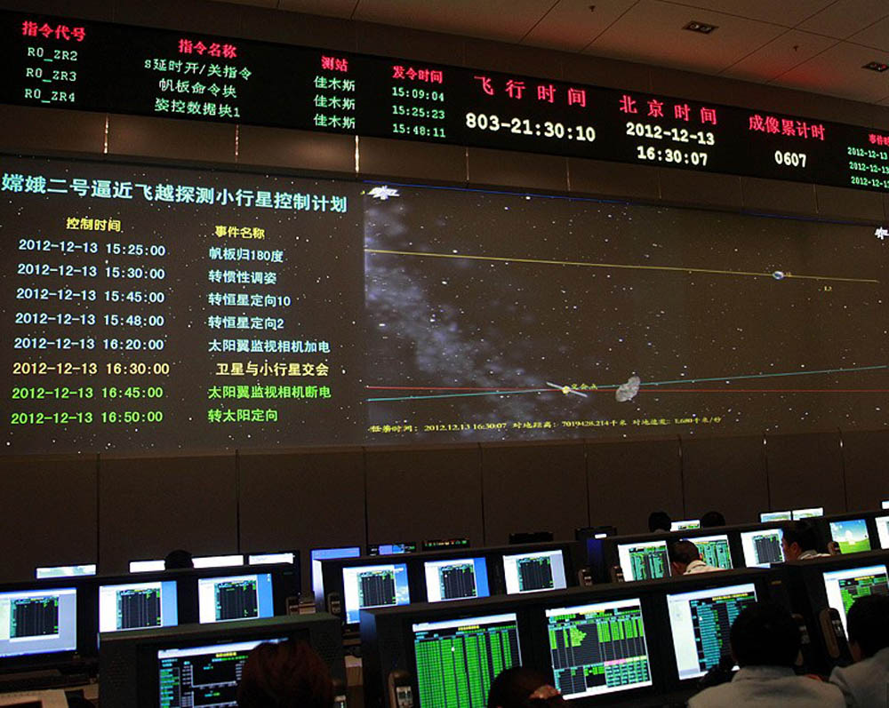 圖:13日,北京航天飛行控制中心實時測控嫦娥二號飛越探測小行星任務/新華網