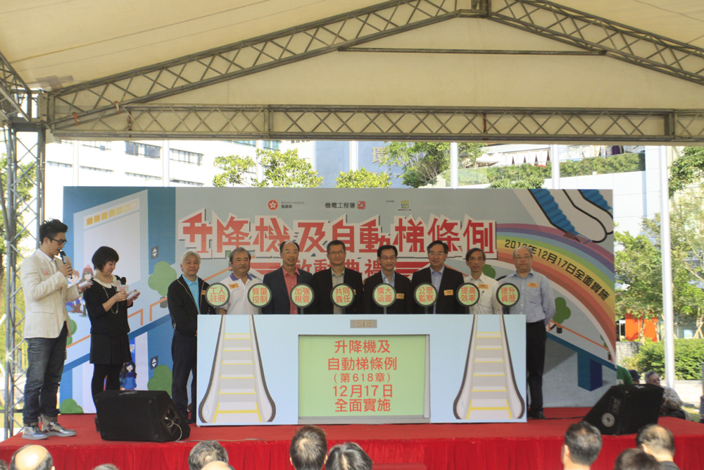 圖:陳茂波(右五)出席《升降機及自動梯條例》啟動禮 /實習記者鄧碧輝攝