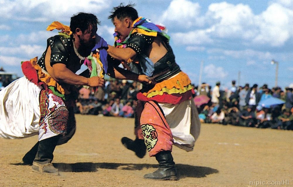 那達慕,蒙古語為快樂、遊戲的意思。相傳漢朝王昭君出塞時,草原人民就曾以盛大的那達慕大會來歡迎她。那達慕大會起源於古代蒙古族的「祭鄂博」。「鄂博」亦稱「敖包」,是一種圓形尖頂、方形基座的標誌物,原為道路邊界的象徵,後演變為祭祀山神、路神的場所。蒙古族傳統每於農曆7月13日祭鄂博,並逐漸發展成為蒙古族每年舉行一次的摔跤、賽馬和射箭之社會娛樂活動日。