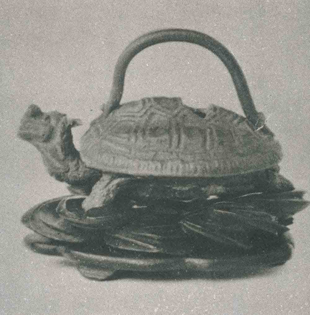 深深記得很久前在博物院,見過十七世紀初期名家刻「徐次京」款之紫砂三足龜水滴,引頸前望,神氣十足;形制大同小異,同為三足,而非四足。我國古代神話中,傳太陽內有三足烏(亦稱「金烏」),認為可以「使正義」,照耀萬物,守護生命和財物。後人創出三足龜形象,應有近似福蔭意義。《周易·損》指「十朋之龜弗克違,元吉」。從前也目睹古碑座,刻為龜形(其中有一座為三足龜),古人叫作「龜趺」。元代袁桷有兩句詩:「龜趺負穹石,浮語極褒侈」,蘊涵深意。