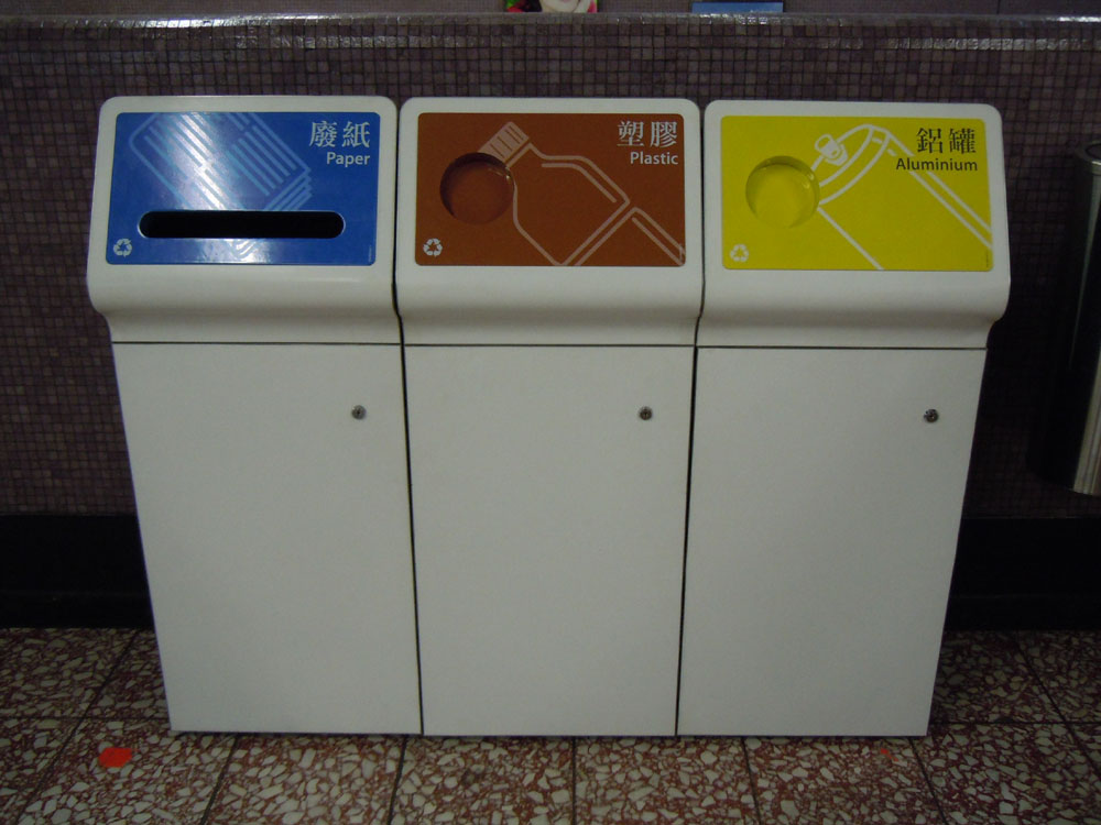 港鐵○七年十月開始在香港站東涌線月台及機場快線市區預辦登記大堂,設置三色回收箱,試驗在車站分類收集廢紙、膠樽和鋁罐的反應,以及處理回收廢物時的程序和衛生情況。