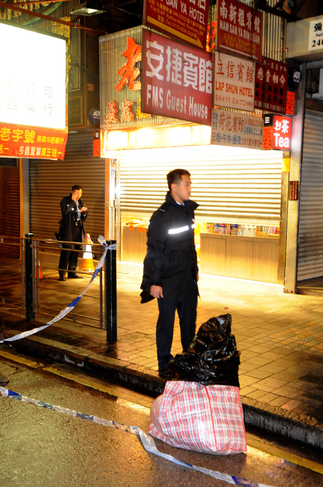 昨日凌晨五時十一分左右,兩名穿深色衣服男子,撬毀上址參茸店的電閘鎖,打開鐵閘入內搜掠,偷走大批冬蟲夏草、燕窩等藥材物品,全部塞進兩個尼龍袋內,得手後各攜一袋離開。保安員例行巡邏經過,赫見參茸店鐵閘被撬開,兩漢形迹可疑,立即高聲喝止;兩賊事敗心驚膽怯,立即把兩袋棄在行人路邊落荒逃跑,其後截乘的士往尖沙咀方向遁去無蹤。