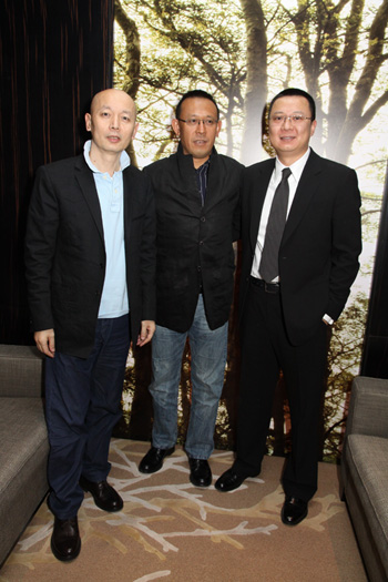 圖:姜文(中)被問新片票房,即推給老闆馬珂(右),旁為葛優