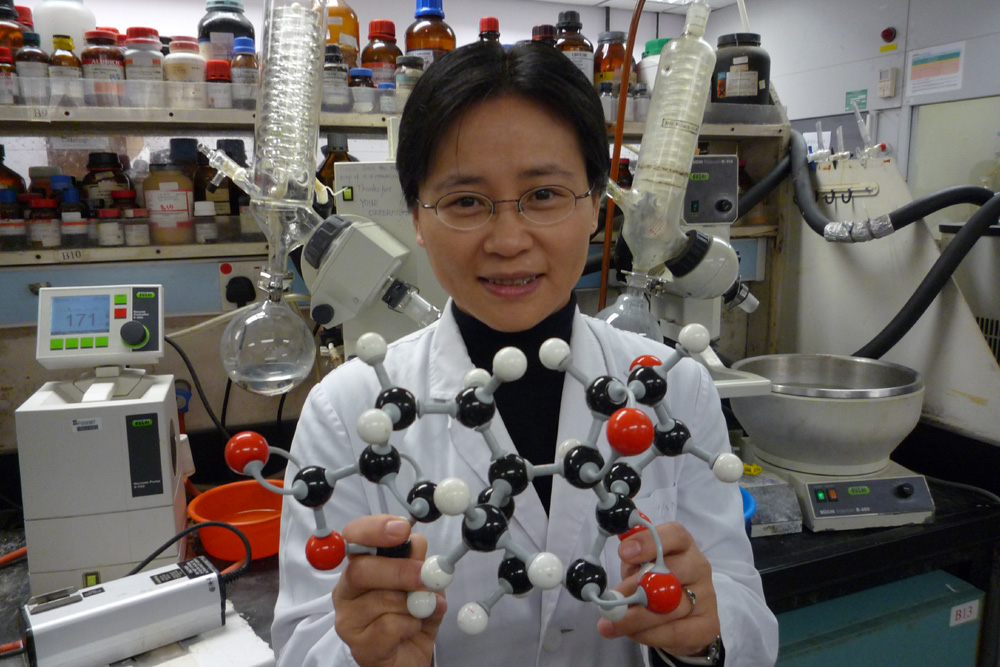 圖:楊丹透過化學合成發現雷公藤擁有極強的抗癌、消炎和免疫抑制能力,終於成功分解當中毒性及功用 本報攝