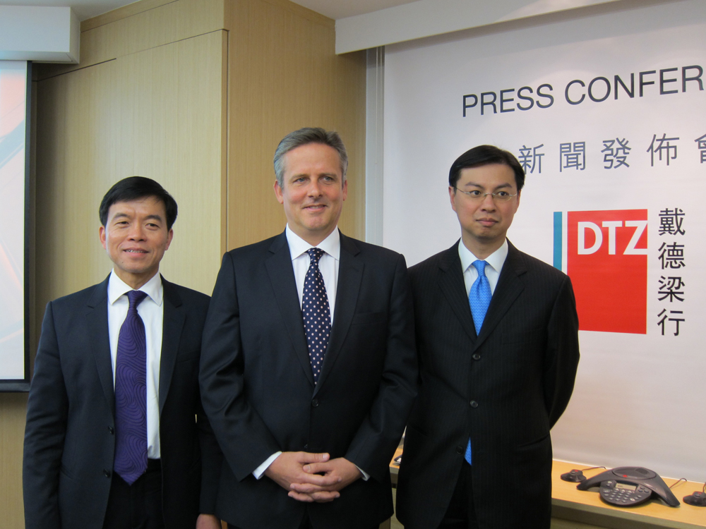 圖:左起:陶汝鴻、彭瑪及戴德梁行寫字樓董事阮仲賢指出,今年整體寫字樓空置率料降至3%