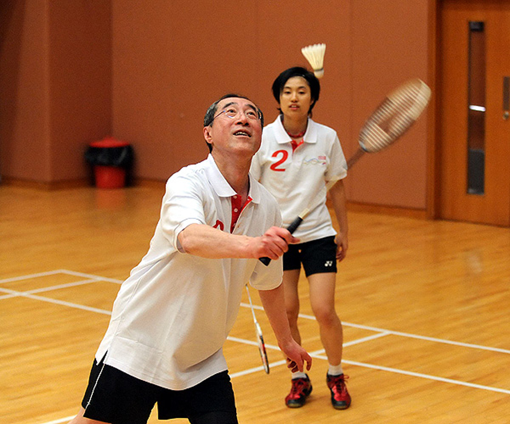 【本報訊】喜愛運動的政務司司長唐英年,相約兩位羽毛球高手陳念慈和葉姵延,和行政長官辦公室主任譚志源,來一場混雙友誼賽。唐英年表示,申辦二〇二三年亞運會正好讓下一代,尤其是運動員有奮鬥目標,令社會齊心協力朝這個目標進發。