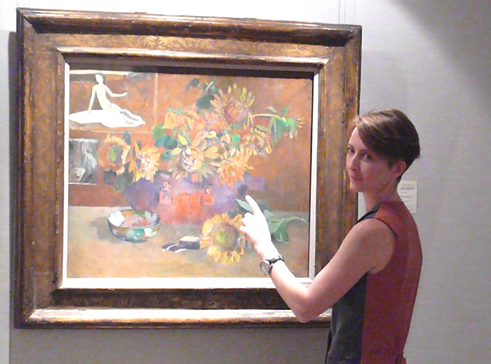 圖:Teresa介紹高更這幅以畫中畫及向日葵紀念好友梵高的作品《靜物》\本報攝