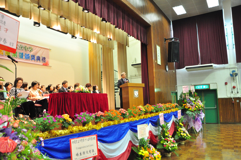 主禮嘉賓蔡宗輝是資深社會工作者,亦為該校學校管理委員會委員,他勉勵同學要努力建立人生的「四桶金」:(1)建立個人的良好信譽;(2)善用時間,將時間用在學習知識和充實自我上;(3)要有人生夢想,並時刻朝夢想不斷奮鬥;(4)要有堅毅的信心。以上四桶金不必靠家傳或祖先蔭庇,只要肯努力,任何人都可以擁有,而一旦擁有這四桶金,就可以開創璀璨而有意義的人生!