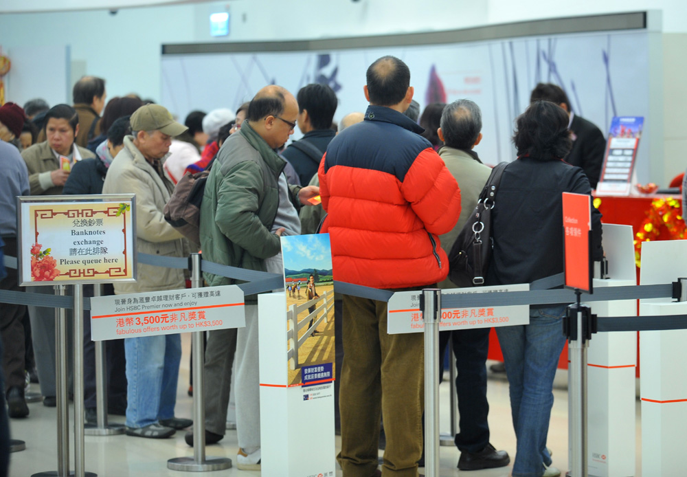 金融管理局表示,三間發鈔銀行準備三至四億張全新和直版鈔票供市民兌換,相信可足夠讓市民兌換。雖然貨量充足,但昨日仍有不少市民冒寒冷天氣在銀行分行排隊換鈔。據天文台資料顯示,昨日上午氣溫約為十四度,仍有數十名市民一早已到旺角滙豐銀行分行門外排隊。由於天氣寒冷,銀行提早十五分鐘開放讓市民入內,並特別開設二十七個櫃位加快服務,同時將營業時間延長至下午五時。