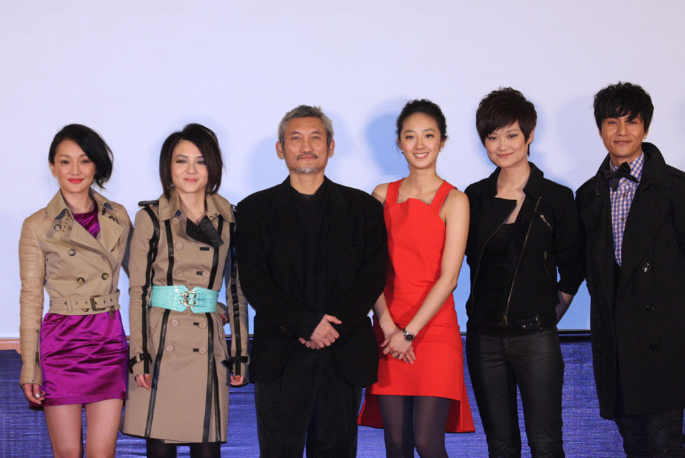 圖:周迅(左起)、范曉萱、徐克、桂綸鎂、李宇春和陳坤齊出席關機發布會