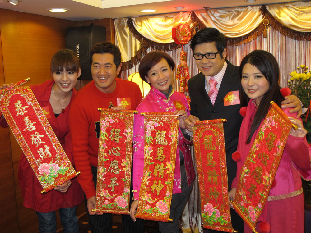 圖:娥姐(中)與呂慧儀(左起)、鄧梓峰、安德尊和鄭嘉雯齊錄影賀年節目
