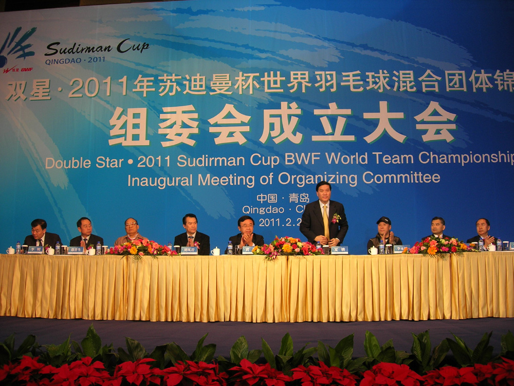 青島市自2009年6月,正式啟動2011年蘇迪曼杯的申辦和籌備工作。在國家體育總局的大力支持下,2010年5月12日,應世界羽聯邀請,青島市組團赴馬來西亞在世界羽聯代表大會上進行了籌備陳述、接旗、簽約儀式。同時,世界羽聯舉行新聞發布會宣布青島市申辦2011年蘇迪曼杯成功。