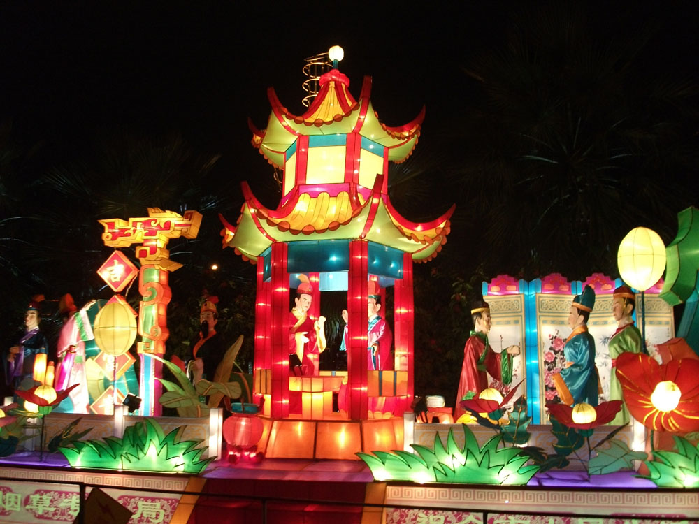圖:栩栩如生的大型花燈組合《潮州八賢》 本報攝