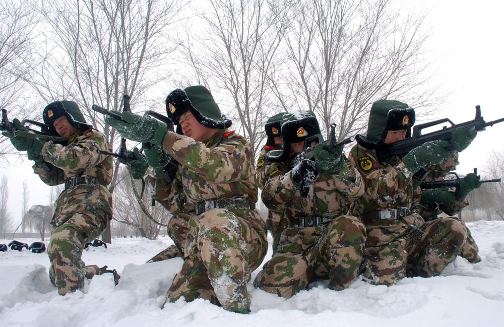 新疆邊防總隊對新兵在進行雪地訓練,以提高對特殊天氣條件的適應性。被稱為「西北第一哨」的新疆軍區邊防某部,加強巡邏西北邊防線。