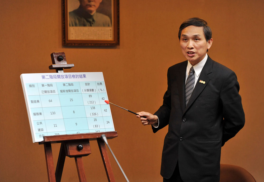 圖:台經濟部長施顏祥2日舉行記者會,公布第2階段開放陸資來台投資項目,包括製造業25項、服務業8項與公共建設9項 中央社