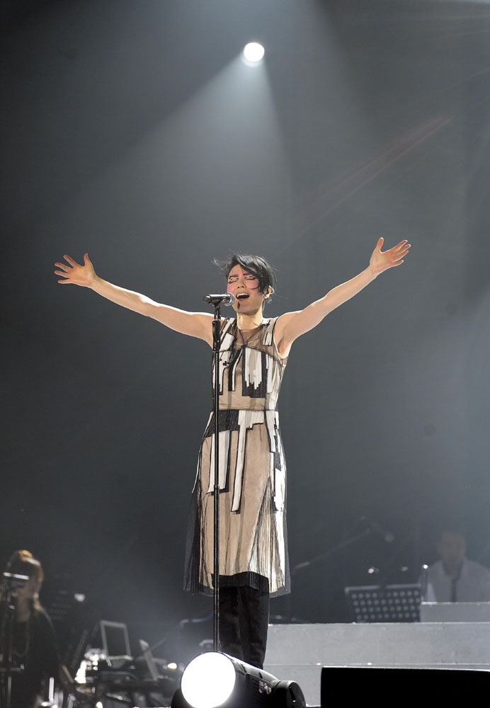 圖:王菲在最後一場個唱上演唱《心經》送給地震災民
