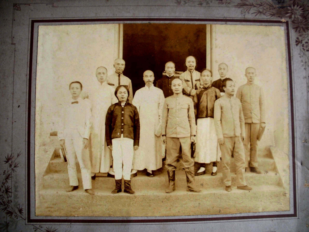 圖:吳殿英(吳歡高祖父),吳稚英(吳歡曾祖父)父子一八九八年在湖北武備學堂練兵時期照,二排中立者吳殿英,左一吳稚英,後排右二莊蘊寬(吳歡曾舅公)
