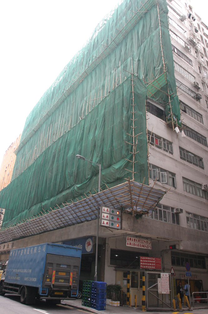圖:警方懷疑賊人見大廈外牆架起棚架趁機犯案\本報攝