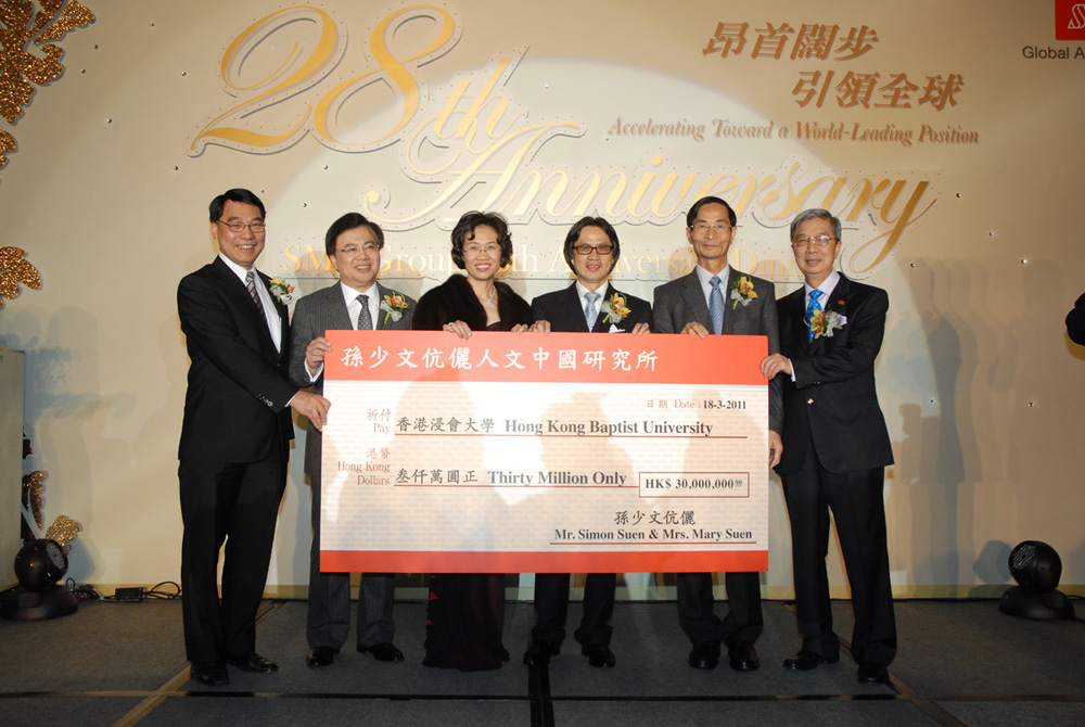 浸大為感謝孫少文夫婦的捐助,於昨晚舉行捐贈儀式。SML集團主席孫少文表示,浸大重視全人教育,在人文科學和跨文化研究上表現出色,相信研究所能把國學和西方的漢學研究相互結合,推動中西文化交流。浸大校長陳新滋說,成立人文中國研究所旨在促進本港與海內外各學術機構在國學和漢學領域的高層次和高水平研究與交流,為表揚孫少文夫婦的支持,浸大將邀請孫氏夫婦擔任研究所的榮譽所長。研究所成立後,將舉辦國際論壇、推行各項交換學者及研究生計劃、創辦各類人文中國研習班等。