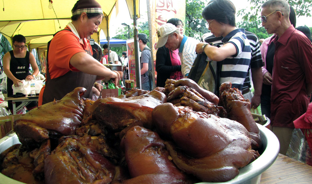 圖:豬腳是島內民眾喜愛的佳餚之一。圖為去年台灣豬腳節在屏東市舉行    資料圖片