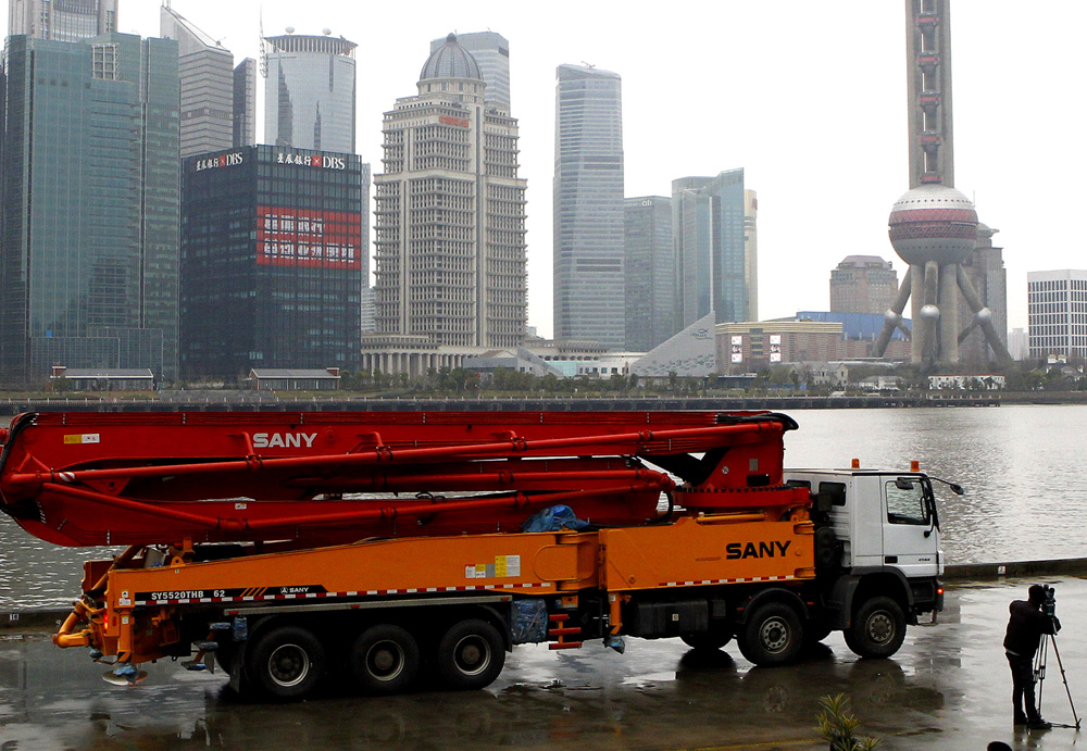 圖:中國三一重工支援日本的62米臂長泵車22日由上海啟運日本新華社