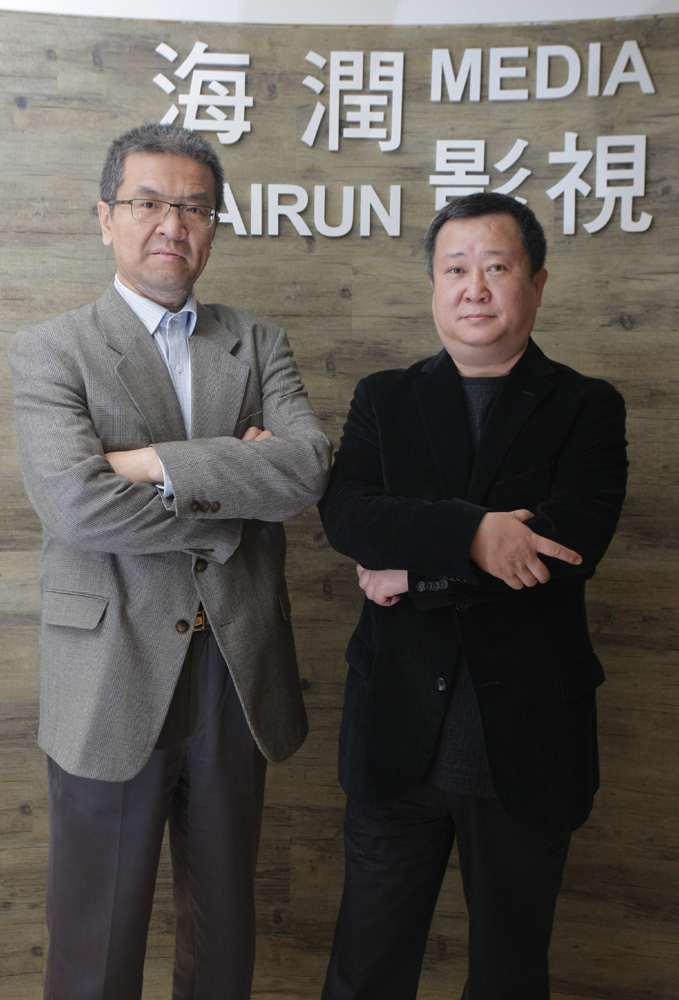 圖:劉燕銘(左)說,來港上市,有利擴大公司規模。旁為海潤影視總裁趙智江