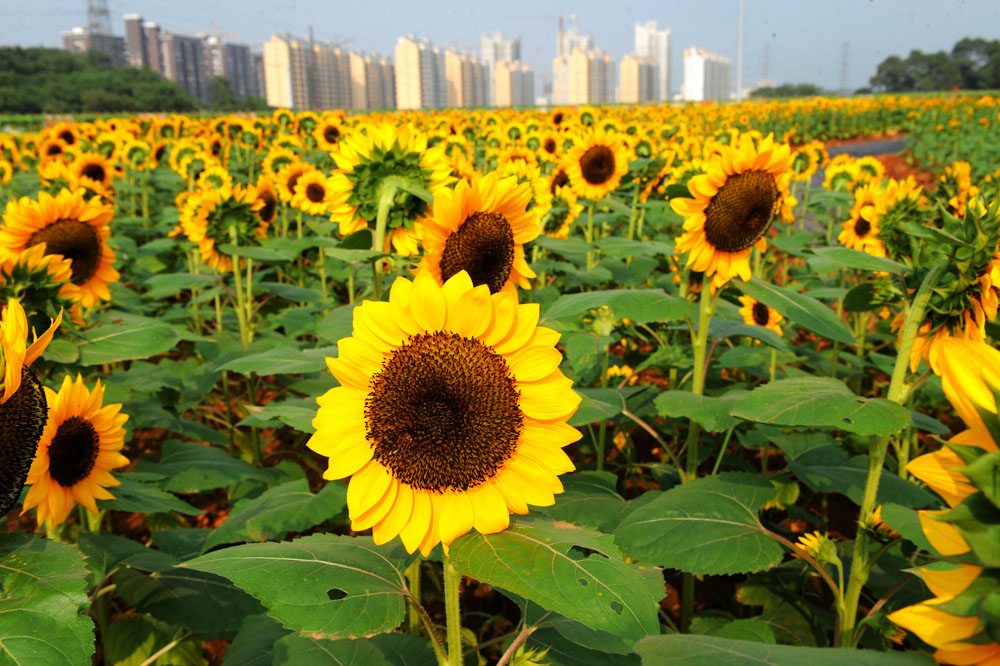 圖:湖南省森林植物園內競相綻放的向日葵花\資料圖片