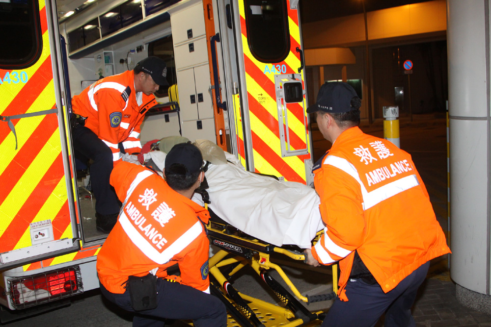 圖:墮樓內地男校長由救護車送院後不治
