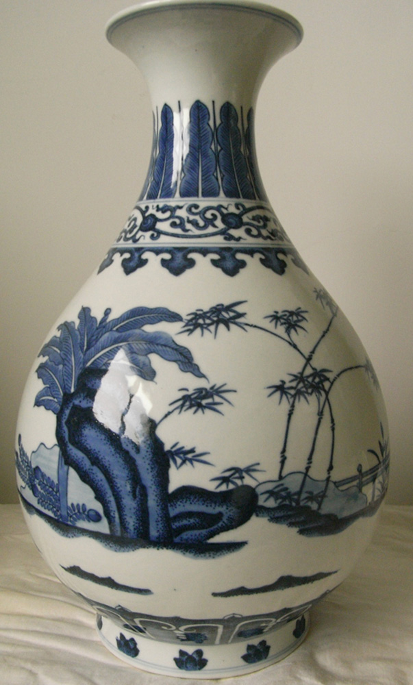 圖:仿咸豐青花竹石芭蕉圖玉壺春瓶