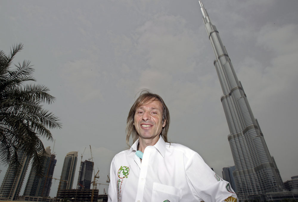 有「蜘蛛人」之稱的法國登高能手羅伯特28日晚成功攀登上了迪拜的世界最高建築物哈利法塔。