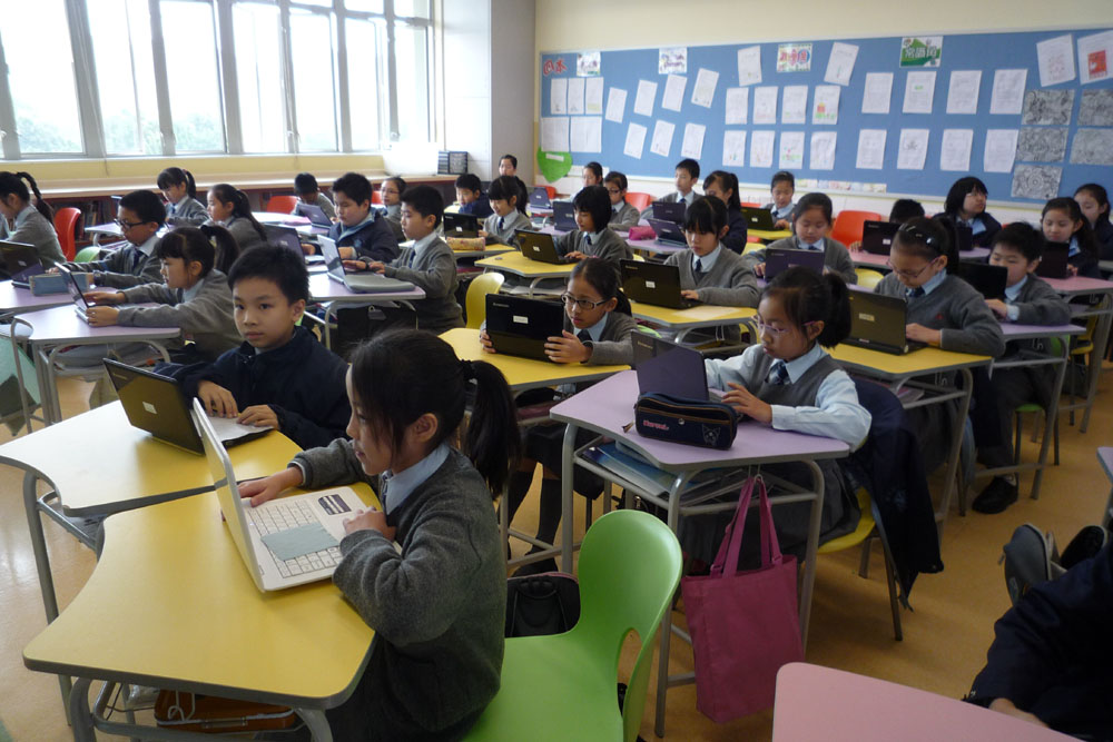 圖:鳳溪創新小學推行電子學習試驗計劃,將擴至小一至小六中英數及常識科教學 本報攝