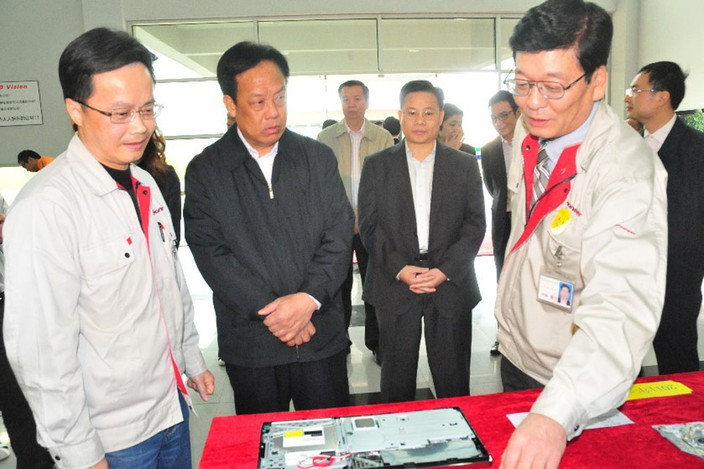 圖:東莞市長李毓全(左二)前往日資企業先鋒高科技公司調研生產經營情況\黃仰鵬攝
