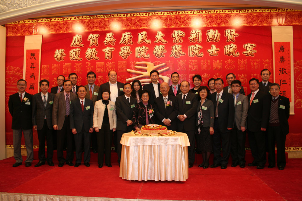 圖:培僑教育機構設晚宴賀吳康民(前排右七)獲教院頒榮譽院士