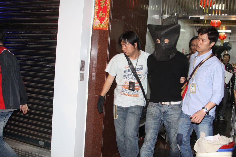 荃灣毒窟在大河道廿六號一幢住宅大廈,三名疑犯年齡由廿七至廿八歲,涉嫌製毒罪名;其中一人曾反抗與警員糾纏,將加控一項阻撓執行職務罪,該警員手部輕傷送院敷藥。