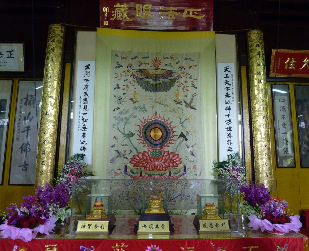 2011·金陵禮佛文化月活動17日(農曆三月十五日)在南京棲霞古寺盛大開幕。去年盛世重光的「佛頂真骨舍利」、「感應舍利」及同出土的十八顆「諸聖舍利」等「佛門三寶」同時展出,接受海內外信眾瞻禮膜拜。