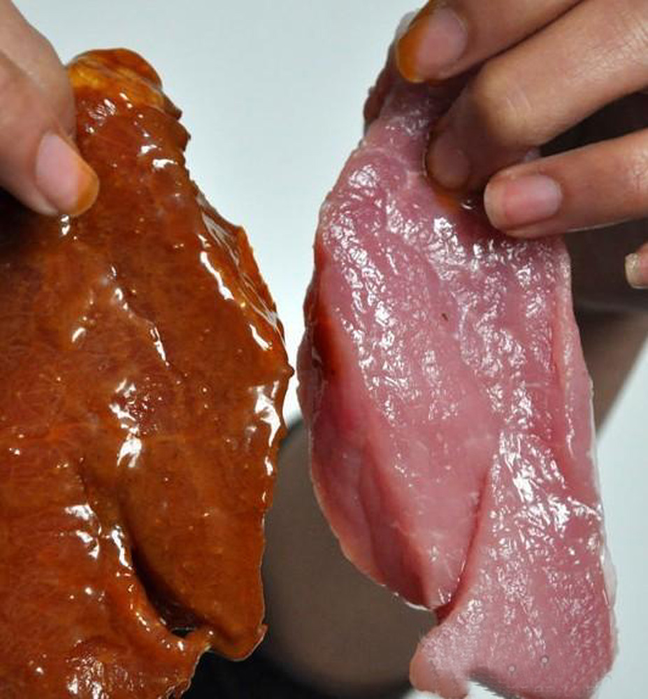 圖:廣東爆出用有毒有害化學物硼砂浸泡豬肉變成牛肉的驚人事件 互聯網
