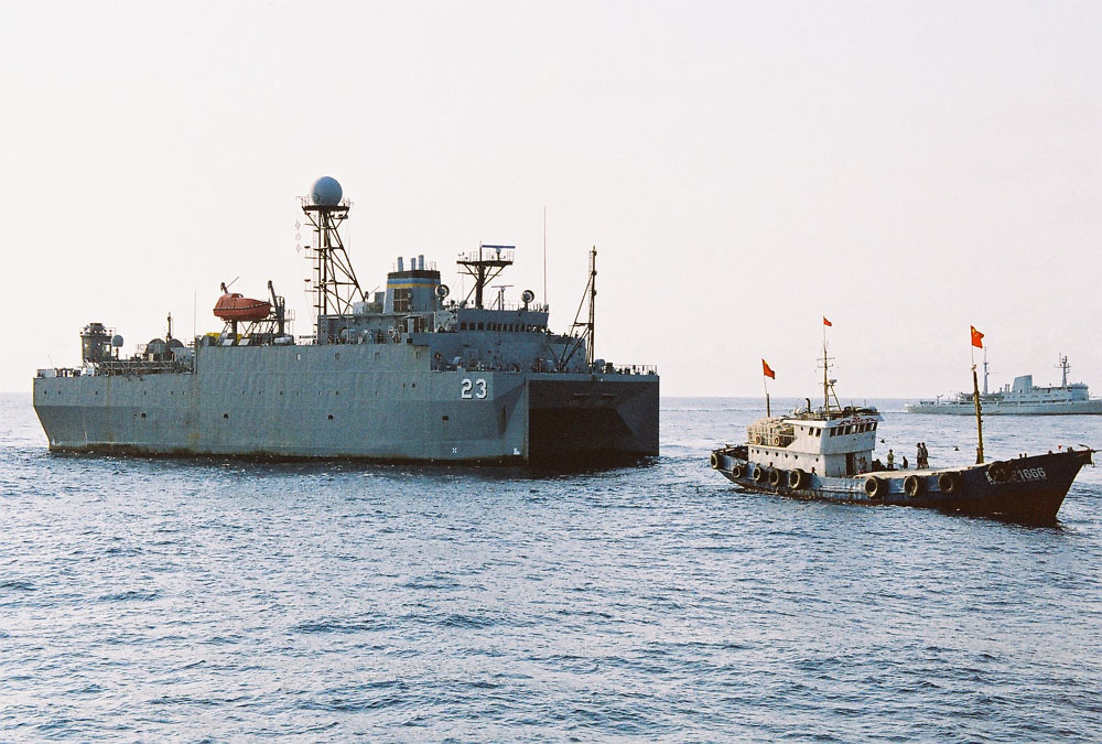 圖:美軍海軍測量船「無瑕」號2009年3月非法進入南海海域,遭中國船隻阻攔\資料圖片