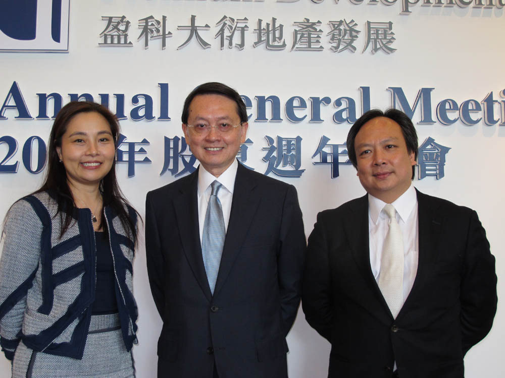 圖:左起:盈大地產執行董事顏金施、行政總裁李智康及副行政總裁林裕乾\本報攝