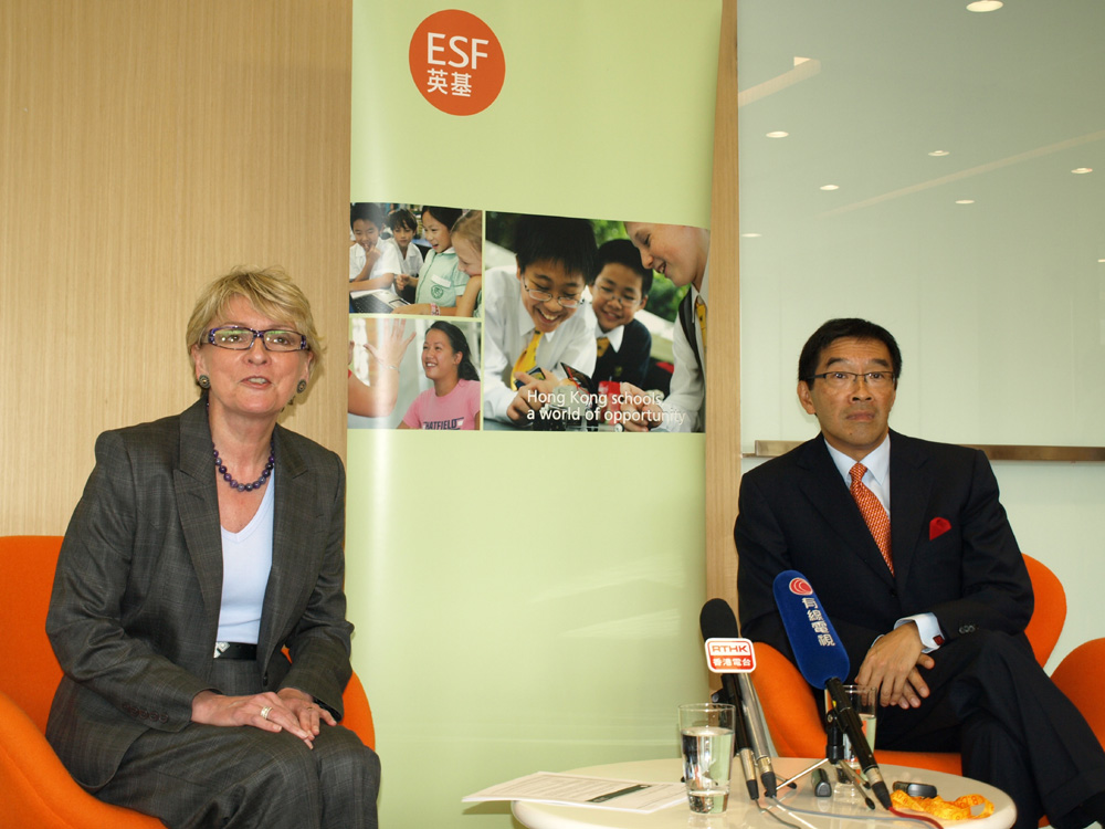 圖:英基新主席唐家成(右)和行政總裁杜茵妮,異口同聲要求政府提高對英基的資助額\本報攝