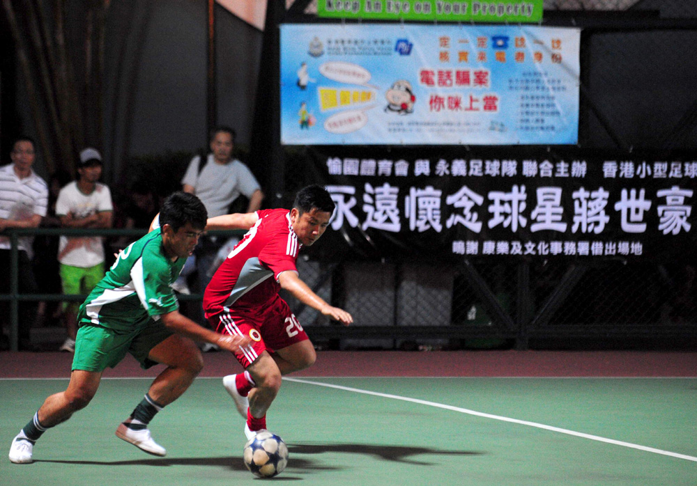 圖:愉園97(左)對香港隊,為昨天蔣世豪紀念賽的壓軸戰\本報攝