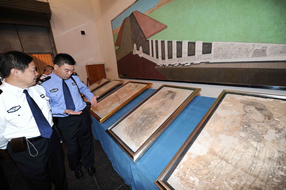 圖:被追回的五幅珍貴壁畫\本報攝