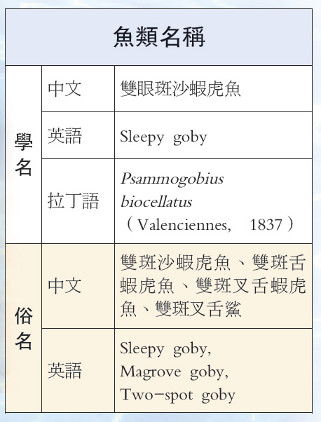 「每周一魚」今期是第91周,「香港魚類學會」繼續給讀者介紹在香港棲息的所有野生魚類。是次介紹的物種為「雙眼斑沙蝦虎魚(Psammogobius biocellatus)」,隸屬「鱸形目(Perciformes)」下「蝦虎魚科(Gobiidae)」,魚類進化中為一群較進步的中小型底棲魚類,主要分布在熱帶至涼溫帶的沿岸河川下游、陸棚至珊瑚礁淺海,某些種終生棲息於淡水(欲閱前文可到「大公網」下載,或參閱本會「每周一魚」目錄)。