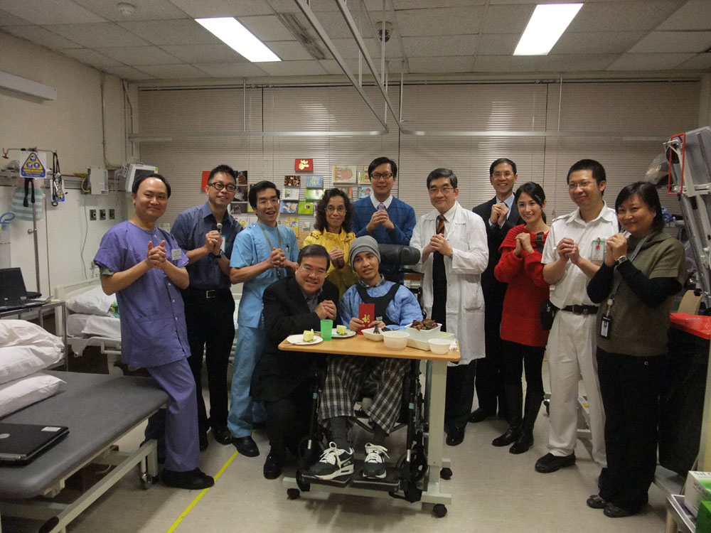 圖:方道生認為,醫治梁頌學不算最難,最難是要向市民講解頌學的情況。圖為方道生與醫護人員等,在農曆年前與頌學及梁太在病房內聚首一堂\資料圖片