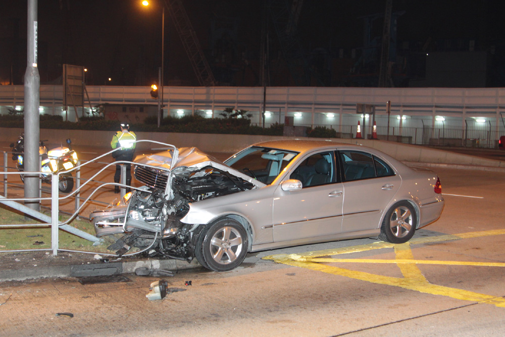 醉駕車禍現場為佐敦道及渡船街交界,昨日凌晨四時十五分,一名四十三歲姓陳男子駕駛平治房車沿油麻地D1公路行駛至佐敦道交界時,該車準備左轉入佐敦道,但卻入錯路口變成逆線行駛,並撼向迎面駛來的一輛保安公司私家車車頭。肇事房車餘勢未了,再衝前十多米撞向路中鐵欄始停下,車頭嚴重損毀,陳某及無辜捱撞的私家車五十一歲姓方司機均絲毫無損,兩人接受警方的酒精呼氣測試,其中陳某因超標涉嫌酒後駕駛被捕帶署調查。