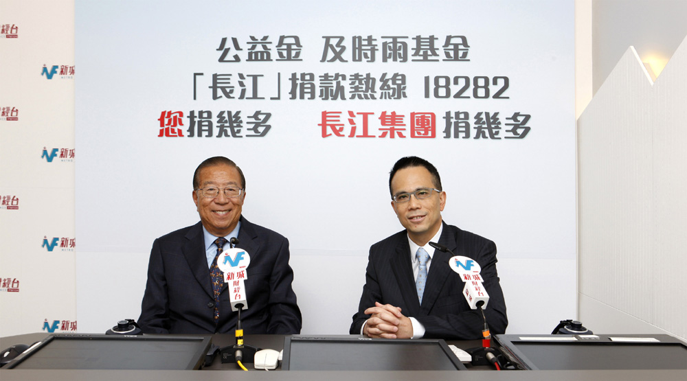 長江實業(集團)董事總經理兼副主席李澤鉅與公益金執行委員會主席李業廣日前到新城財經台,錄製電台宣傳聲帶,呼籲市民於本月二十一日(星期六)晚上八時三十分至十一時三十分,在無線電視翡翠台播出的「萬眾同心公益金」節目期間,致電「長江」捐款熱線「18282」,長江集團將以「您捐幾多 長江集團捐幾多」的配對贊助形式,捐出公眾認捐的等額善款,令公益金的善款倍增。