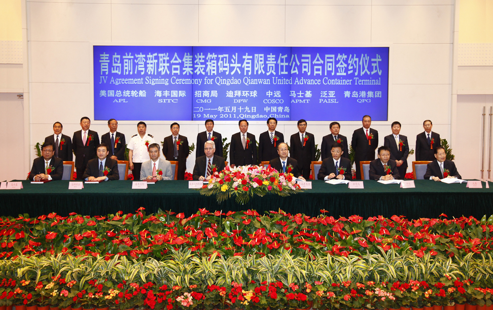 青島前灣聯合集裝箱碼頭有限責任公司(簡稱「QQCTU」)昨日與新加坡APL-SITC Terminal(簡稱「ASTH」)簽約,成立合資碼頭營運公司,經營青島前灣的兩個新泊位。ASTH是由新加坡海皇東方航運(NOL)和海豐國際(01308)在去年組成的合資公司。今次交易令兩家航運集團都能首次參與經營中國內地的集裝箱碼頭,該兩個新泊位料在2011年下半年就會投入營運。