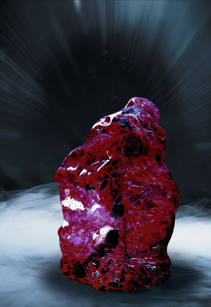 巴林石,產自內蒙古巴林右旗,是中國四大名石之一。至尊級國寶「巴林雞血石王」首次在內蒙呼和浩特亮相,石體高51厘米,寬34.5厘米,厚24.7厘米。石頭質地為深灰色透明牛角凍地,血色鮮紅且集中成片,晶瑩欲滴,點點入石。巴林雞血石是巴林石中的極品,質地溫潤堅實,石上斑斑血跡聚散有致,紅光照人,備受矚目。