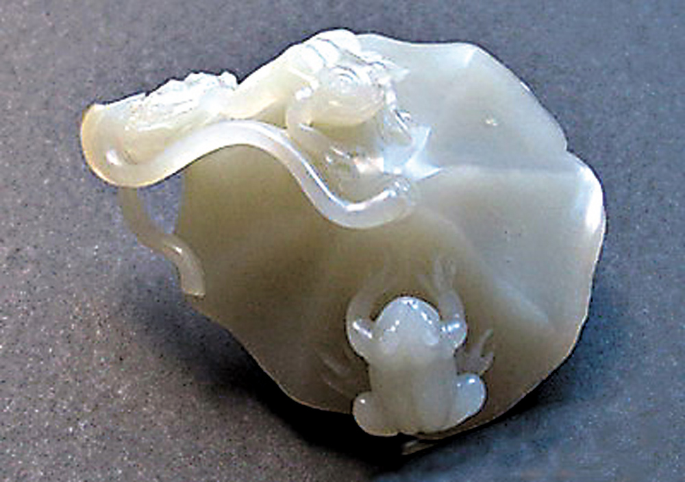 從玉質來講,普通的俄羅斯料顏色很白,但卻給人乾、死、漿的感覺,缺乏油性與細膩。如果細看內部結構就會發現,俄羅斯玉彷彿是一塊塊綿斑組成,而和田玉籽料卻非常細膩。用強光一打,內部結構呈細粥狀,油性很強。這一構成上的區別實際是最根本性的,也是最為精到的一點。我們古代評價一塊好玉,要講它是否溫潤,實際上說的就是細膩與油性。比如,我們把羊脂白玉作為玉的上品,除了講白,一定也要講油性。俄羅斯玉恰恰是玉色很白,但是缺乏油性。用有無油性一衡量,俄羅斯玉與和田玉高下立判,具體玉件一般也就區分開來了。