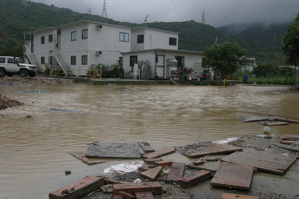 圖:元朗八鄉在暴雨下成為澤國本報攝